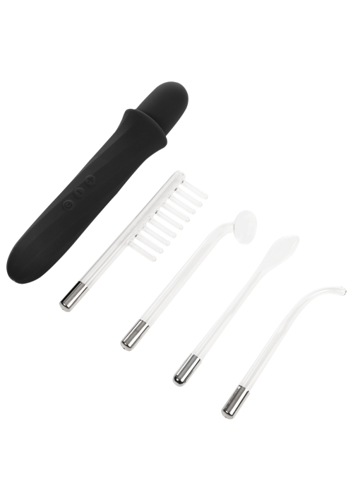 Ez a készlet 4 egyedi alakú üvegelektródát tartalmaz, amelyek mindegyike izgalmas érzések széles skáláját kínálja a bőrön keresztül: fésű gomba 90°-os szögben álló szonda nyelvszerű cső.